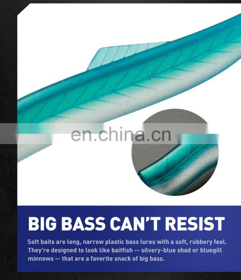 1.Constructed from high quality materials, expertly design and rigorous testing of light refraction fish pattern make soft bait more realistic and attractive. The soft plastic fishing lures who lively perfectly emulates erratic baitfish action.