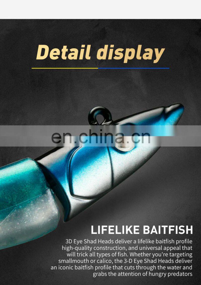 2. Having an ideal weight for long casting and slow sinking, fishing bait can achieve a slow, flutter presentation. Featuring a precisely engineered shape, the soft body swimbaits generate the perfect kicking action. You can easily cast the fishing jigs bait into your ideal fish area.