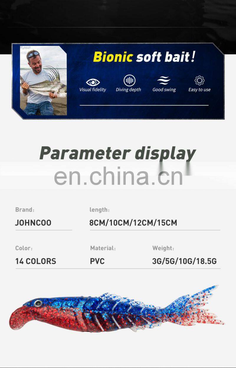 Home > Products > Fishing Lure > JOHNCOO 8cm 10cm 12cm 15cm Pvc Material Soft Fishing Lure With Lip