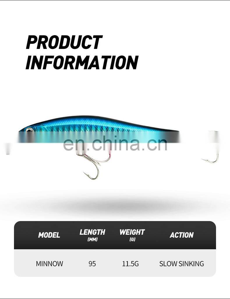 JOHNCOO 95mm 11.5g Artificial Hard Lure Slow Sinking Fishing Lures Minnow