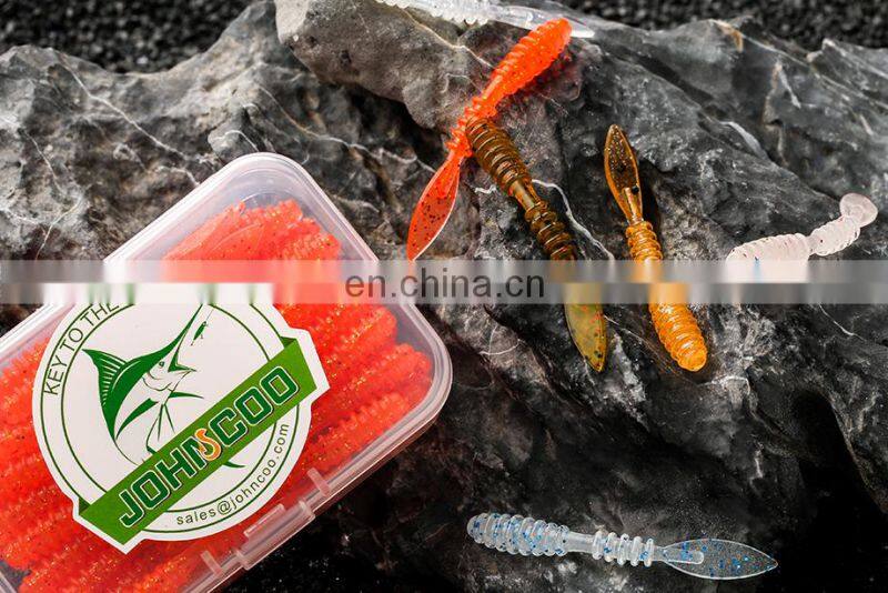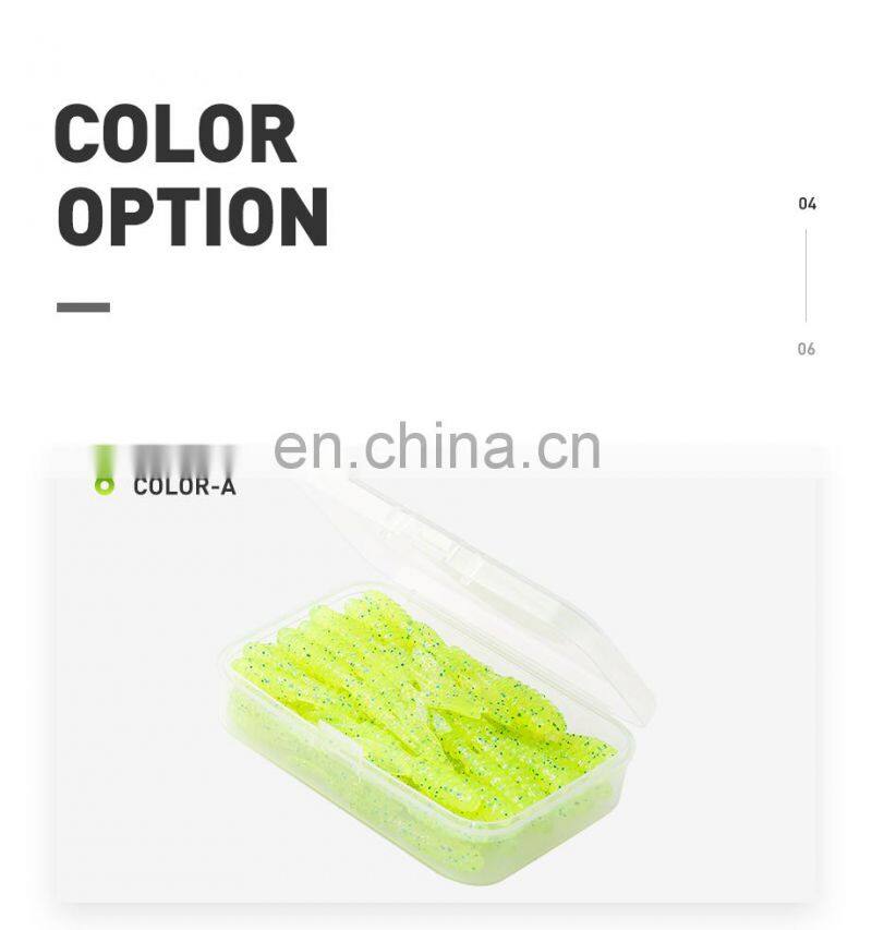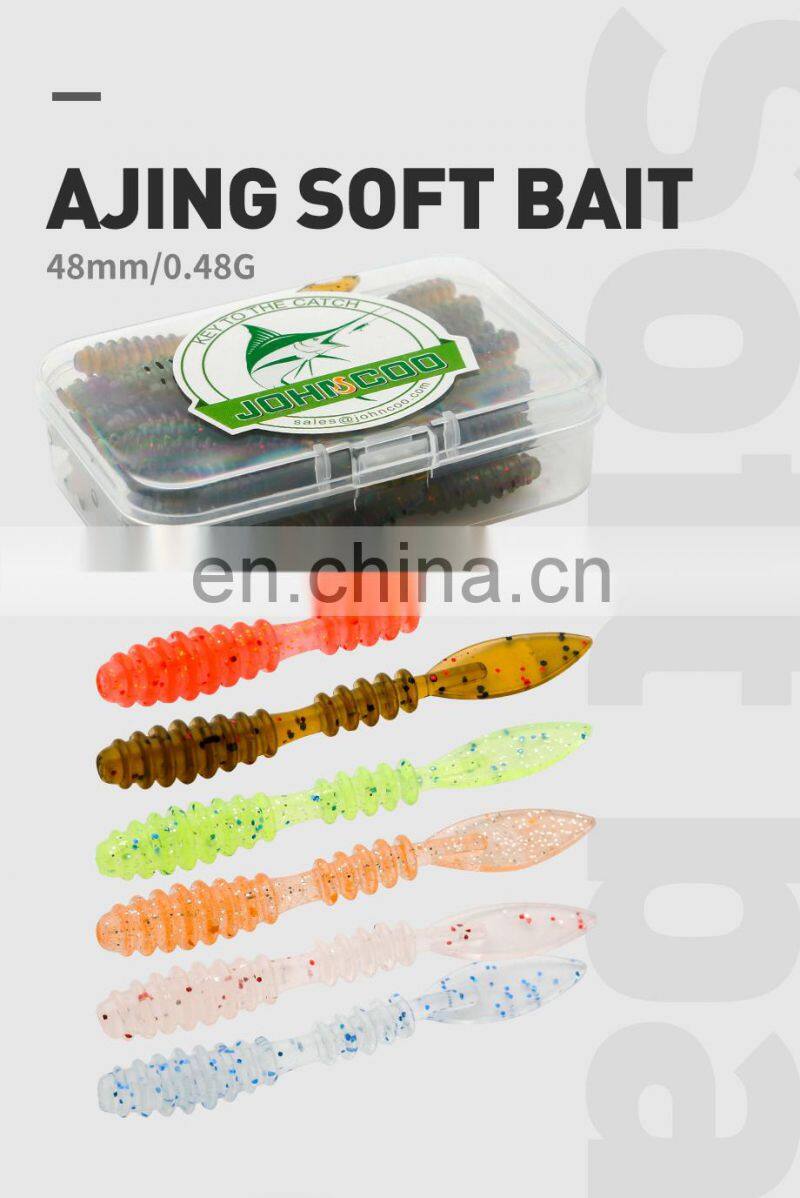 Home > Products > Fishing Lure > JOHNCOO AJING Soft Baits 48mm 0.48g PVC Material Mini Leaves Tail 40pcs Per Box Rock Soft Baits Fishing Lures