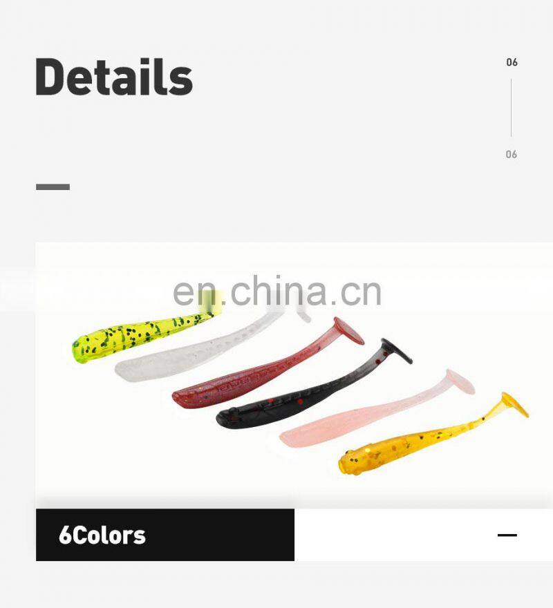 JOHNCOO 6pcs 90mm 4.6g Soft Bait Shad Silicone Lure T-Tail Fishing Lure Easy Shiner Swimbait Artificial Wobblers Bass Pike Lure