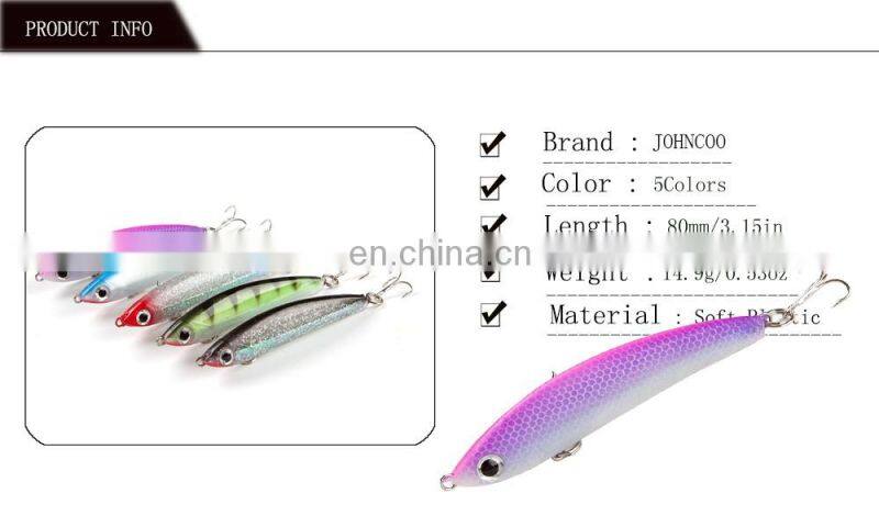 JOHNCOO Soft Bait Pencil 80mm 14.9g Sinking Pencil Lure Depth Pencil Fishing Lure