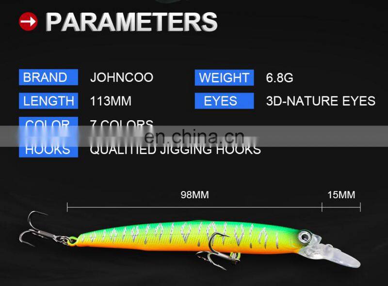 Home > Products > Fishing Lure > JOHNCOO 113MM 6.8G Bass Fishing Minnow Hard Bait Minnow Lure Mold Fish Fishing Lure