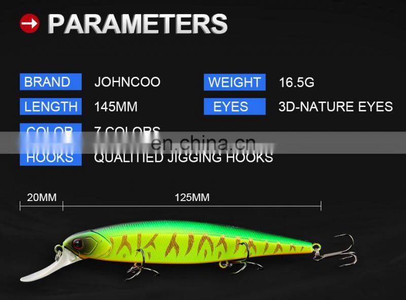 Home > Products > Fishing Lure > JOHNCOO Wobbler Fishing Lure 125mm 16.5g JERKBAIT Floating Lure Minnow Pike Artificial Bait Tackle