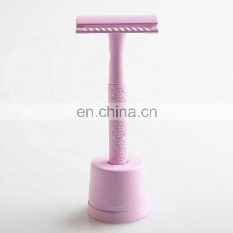 Home > Products > Safety razor > Zero Waste Male Female Bikini Shaver Metal Razor Stand Double Edge Safety Razor Baber Razor Purple Twin Blade Brass 10.8*4.3