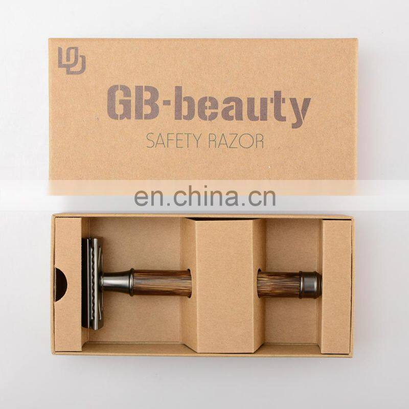 Foshan Professional Traditional Black Chrome Bamboo Wooden Ladies Shaving Double Edge Safety Razor With Engraving Logo