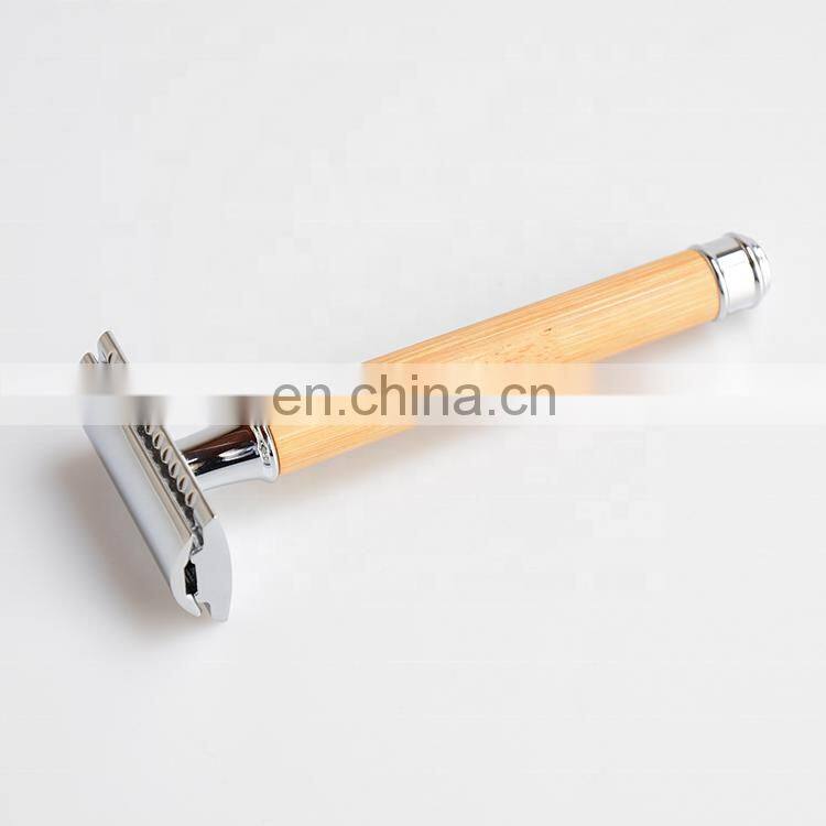 Environmentally Friendly Chrome Silver Wood Razor Long Natural Bamboo Handle Barber Safety Razor For Women