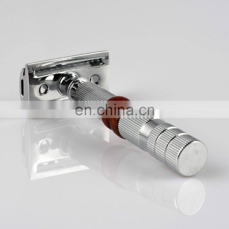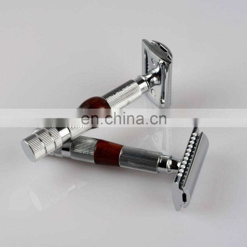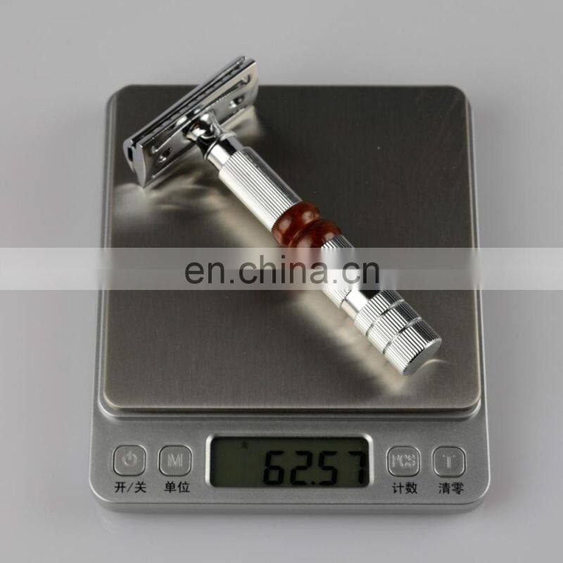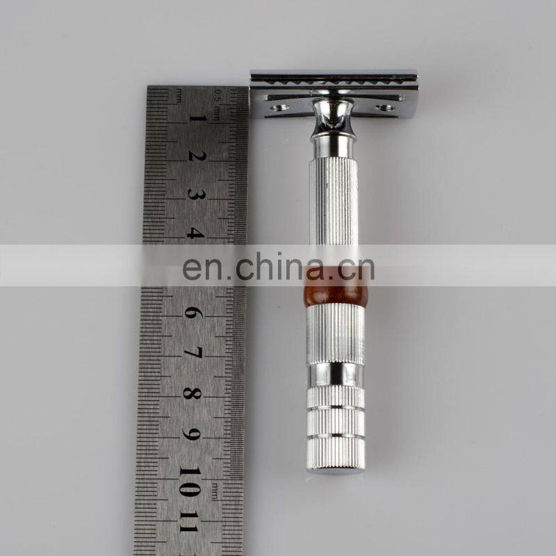 High Quality Barber Vintage Stainless Steel Men Shaving Razor Chrome Wooden Handle Double Edge Safety Razor