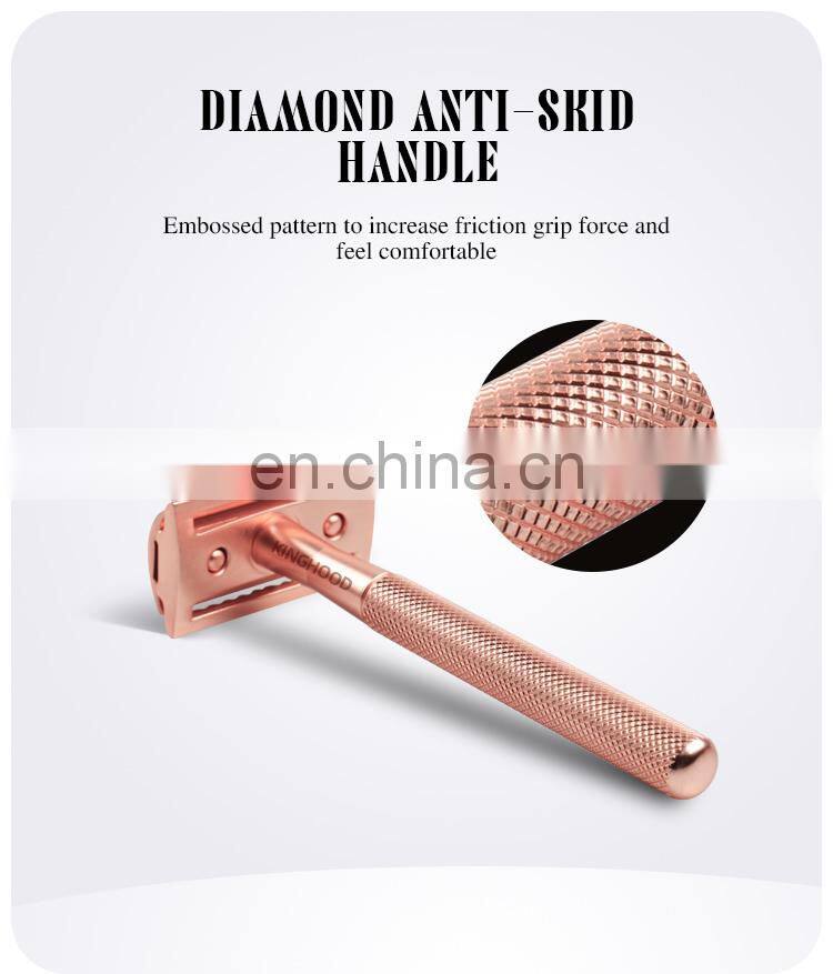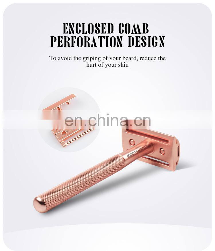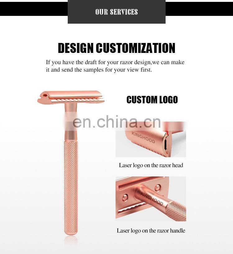 High Quality Beautiful Women Rose Gold Customized Metal Traditional Double Edge Blades Men Shaver Gift Barber Razor