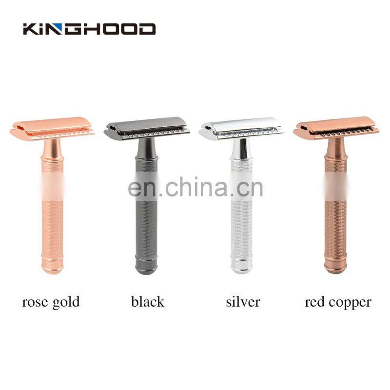 Hot Selling Elegant Private Label Rose Gold Double Edge Safety Shaving Razor for Men Gife