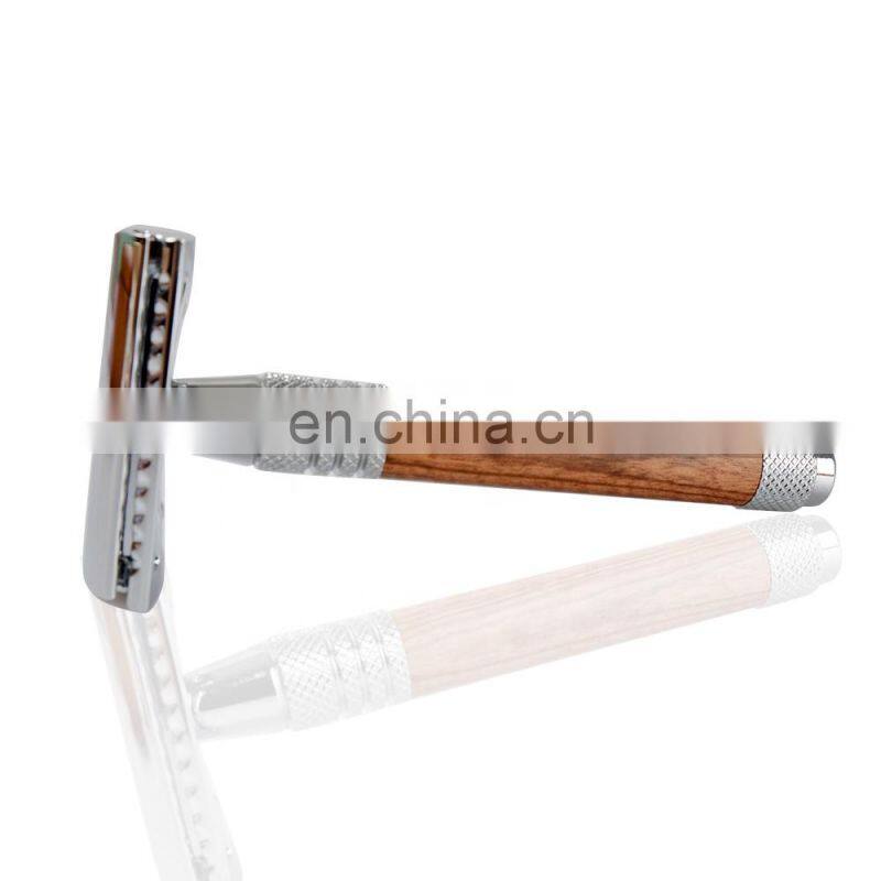 Traditional Custom Logo Eco Friendly no Plastic Professional Barber Biodegradable New Shaving Wood Handle Safety Razor