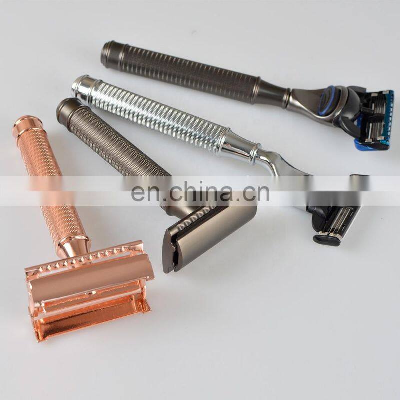 Hot Selling Elegant Private Label Rose Gold Double Edge Safety Shaving Razor for Men Gife