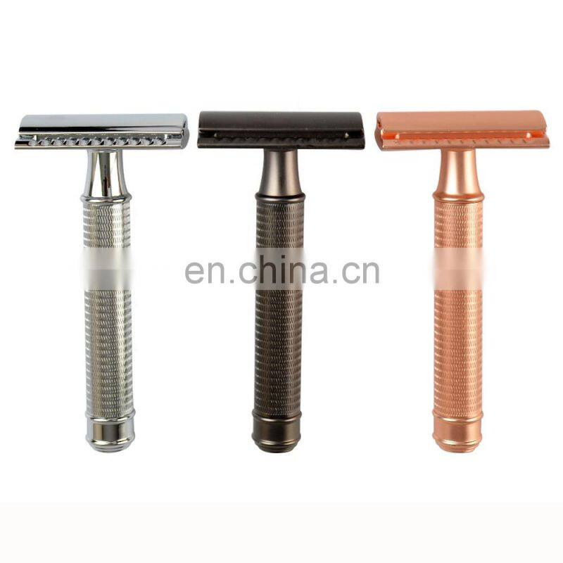 Mens Shaving Safety Razor Barber Custom Logo Metal Double Edge Blade Reusable for Woman