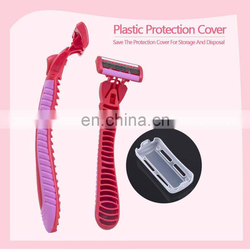 Rubber Handle Germany Blade Women Hair Razor Safety Disposable Shaving Stick Triple Blades Female Razor LY3-03P4