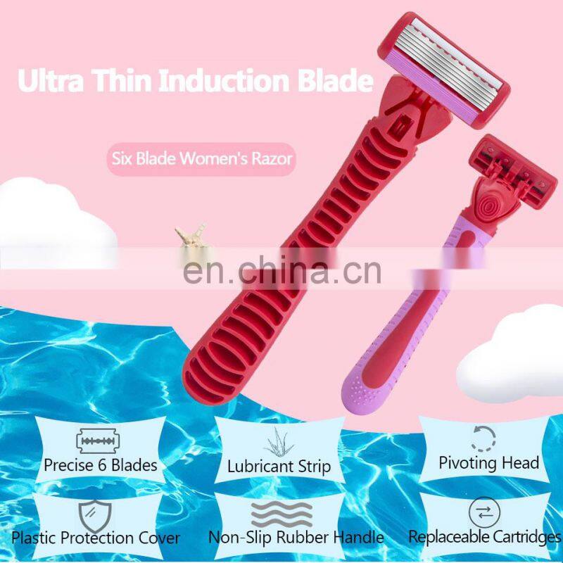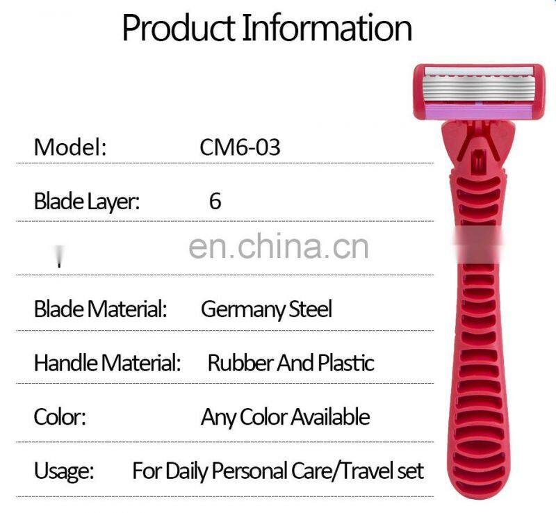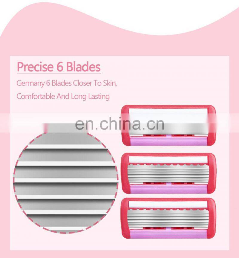 6 Blades Women Safety Razor Changeable Cartridge Body Hair Razor Smooth And Comfortable Shaving Razor With Lubricant CM6-03
