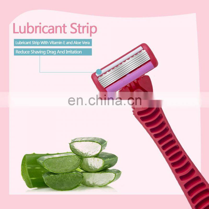 Triple Blades Female Razor Sharp Safety Bikini Razor Smooth Body Hair Remover With Aloe Vera Strip LY3-03Y4