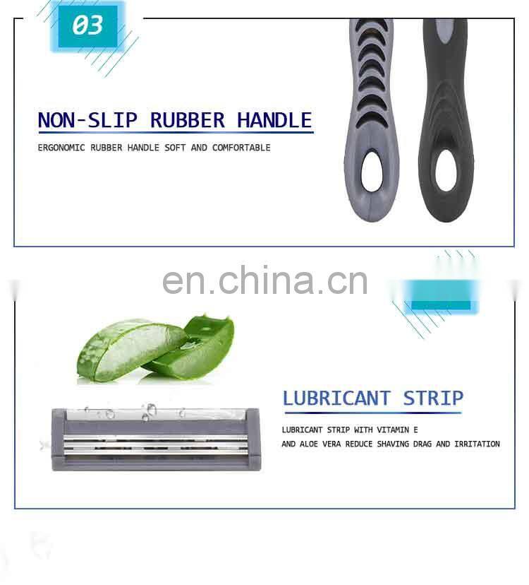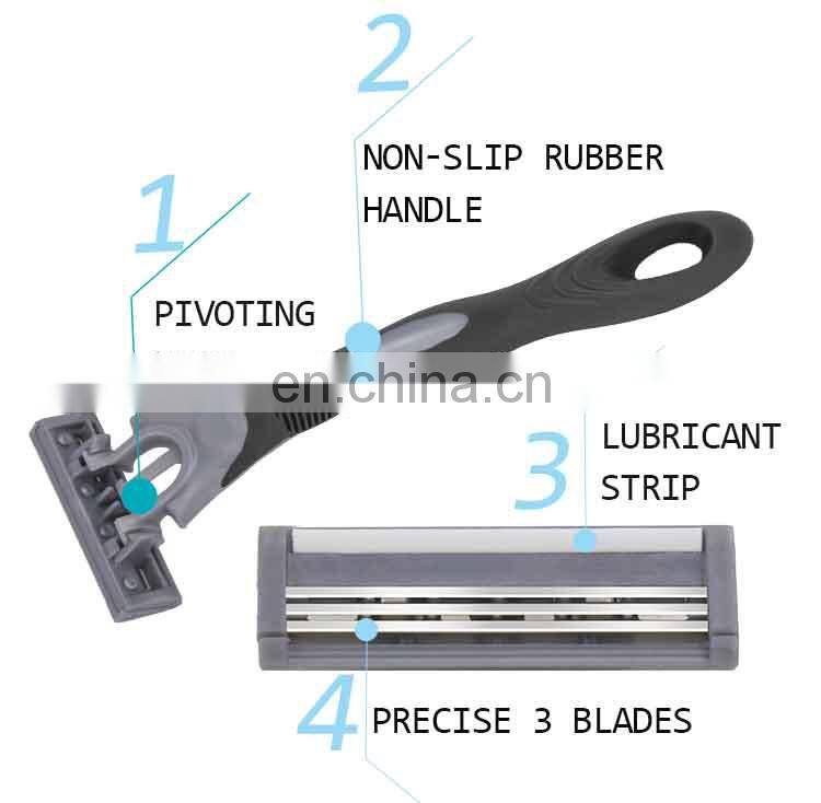 - Manufacture Cheap Price Rubber Handle Triple Blade Disposable Shaving Razor