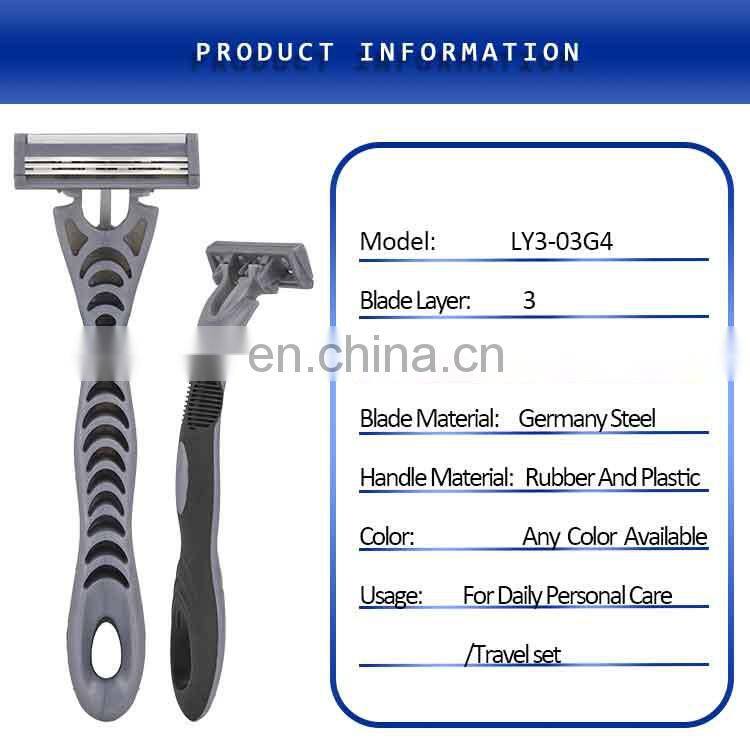 3 Blades Men Beard Razor Stainless Steel Sharp Disposable Razor Factory Wholesale Male Beard Razor Blade Lubricant Strip LY3-01G