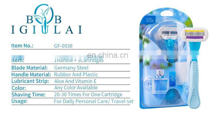 Customized Logo Razor For Women Hair Germany Blades Rubber Handle 4 Blades Women Razor NO Disposanle Razor Manufacture GF-0038