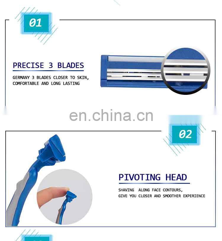 Disposable Triple Men Razor Plastic Rubber Handle Germany Sharp Blade Shaving Razor Pivoting Blade Head LY3-04B
