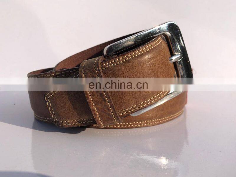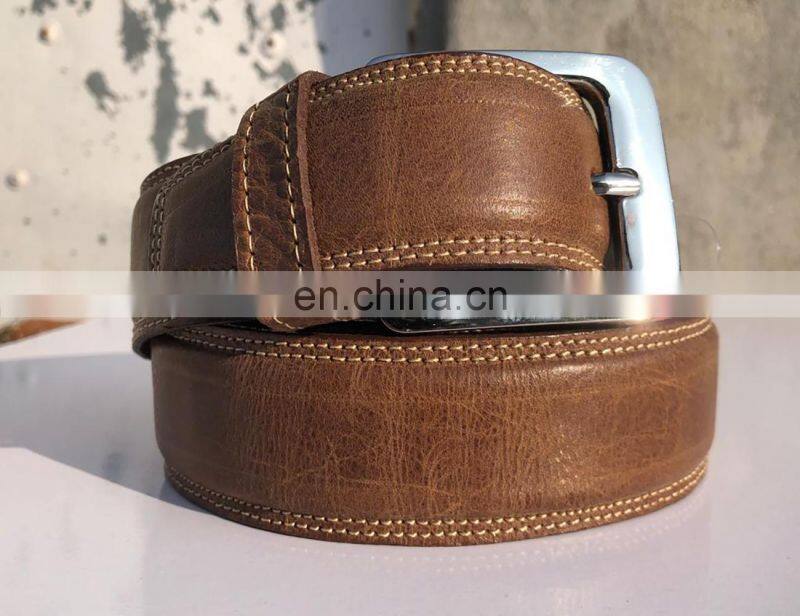 Home > Products > Leather Goods > 2021 Double Stitched Vintage Style Genuine Cow Hide Top Grain Belt for Men 100% Leather Wholesale Customized OEM ODM