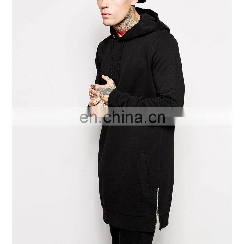 Home > Products > Hoodie/Sweatshirts/Jumpers > Side Zipper Long Line Black Pullover Hoodie Custom Made Hoodies for Men Sweatshirts With Printing or Embroidery Logo