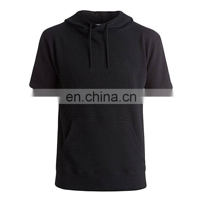 Home > Products > Hoodie/Sweatshirts/Jumpers > Wholesale Plain Black Short Sleeve Custom Made Hoodie for Men French Terry Hooded Sweatshirt Top Quality Men Blank Cotton