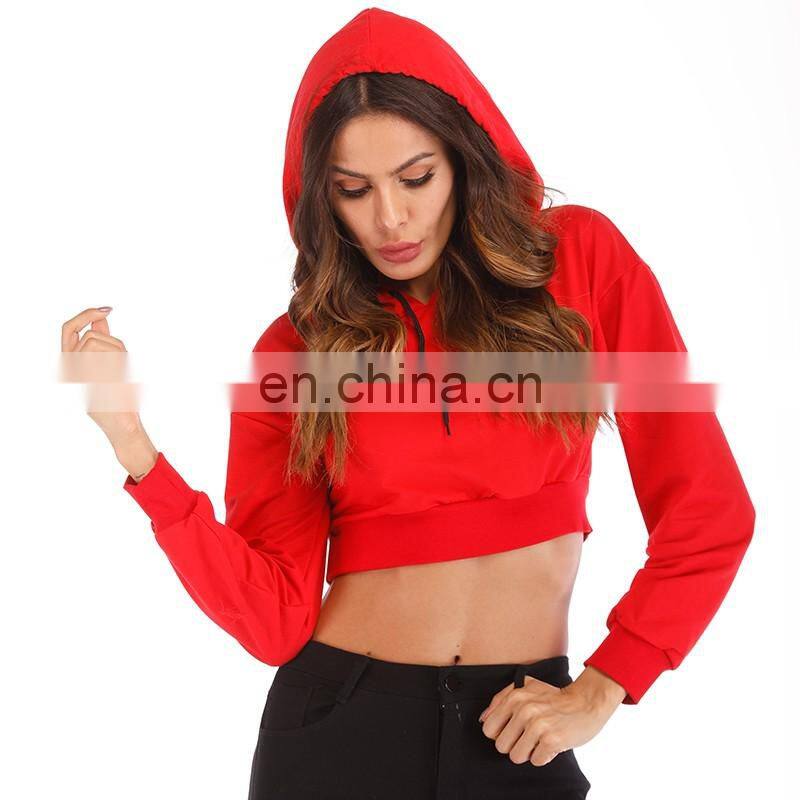 Home > Products > Hoodie/Sweatshirts/Jumpers > Wholesale Gym Workout Custom Logo Printed Ladies Crop Top Pullover Cotton Ladies Plain Hooded Sweatshirts Hoodies for Women