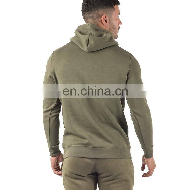 Light Olive Color Custom Logo Printed Embroidered Long Sleeve Mens Fleece Gym Pullover Hoodie