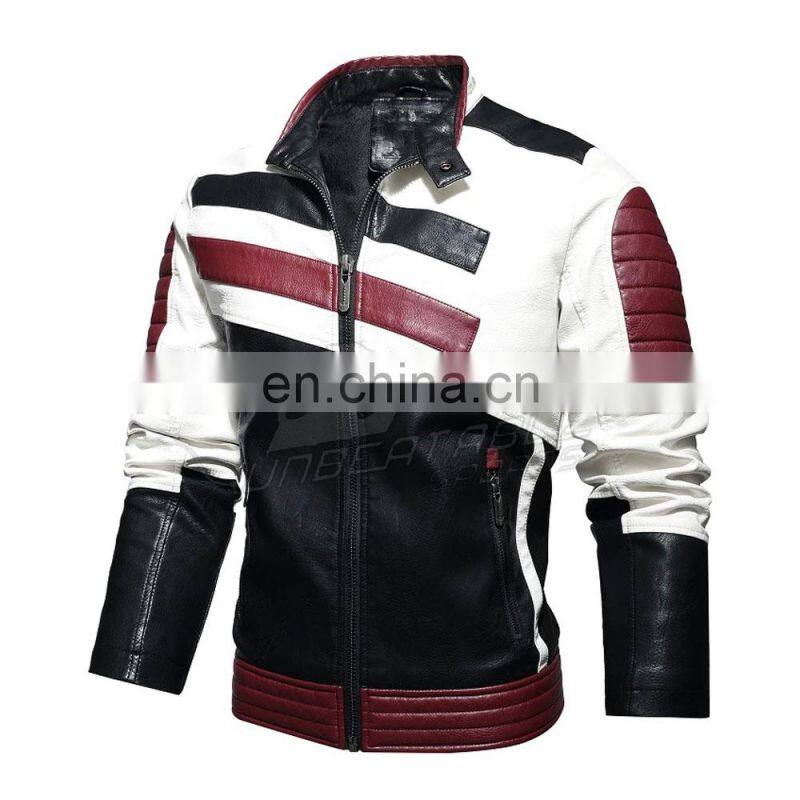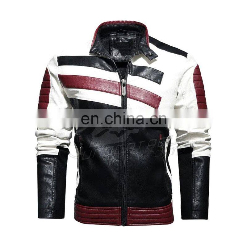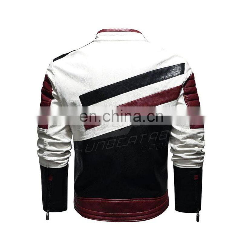 2022 Arrival Unisex Design Color Block Men Genuine Leather Jacket Custom High Quality Men Leather Jacket