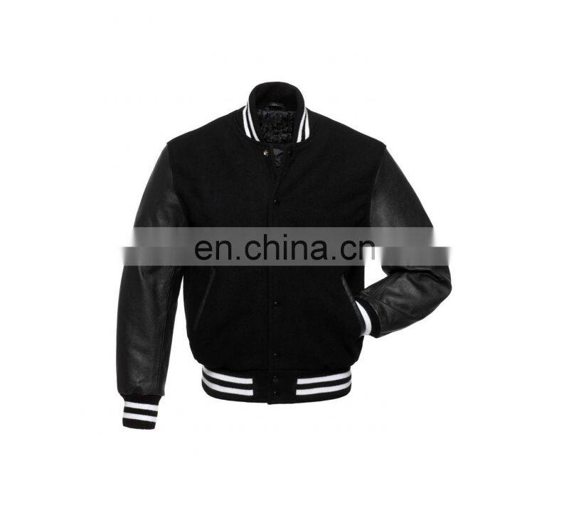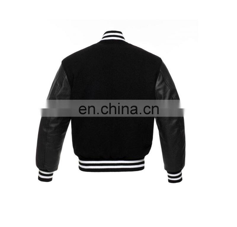 Wholesale Plain Men or Women Custom Black Baseball Letterman Varsity Jacket With Leather Sleeves