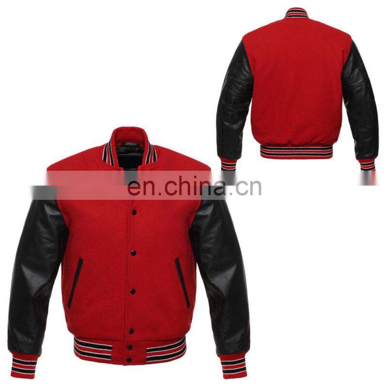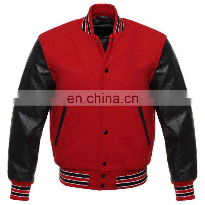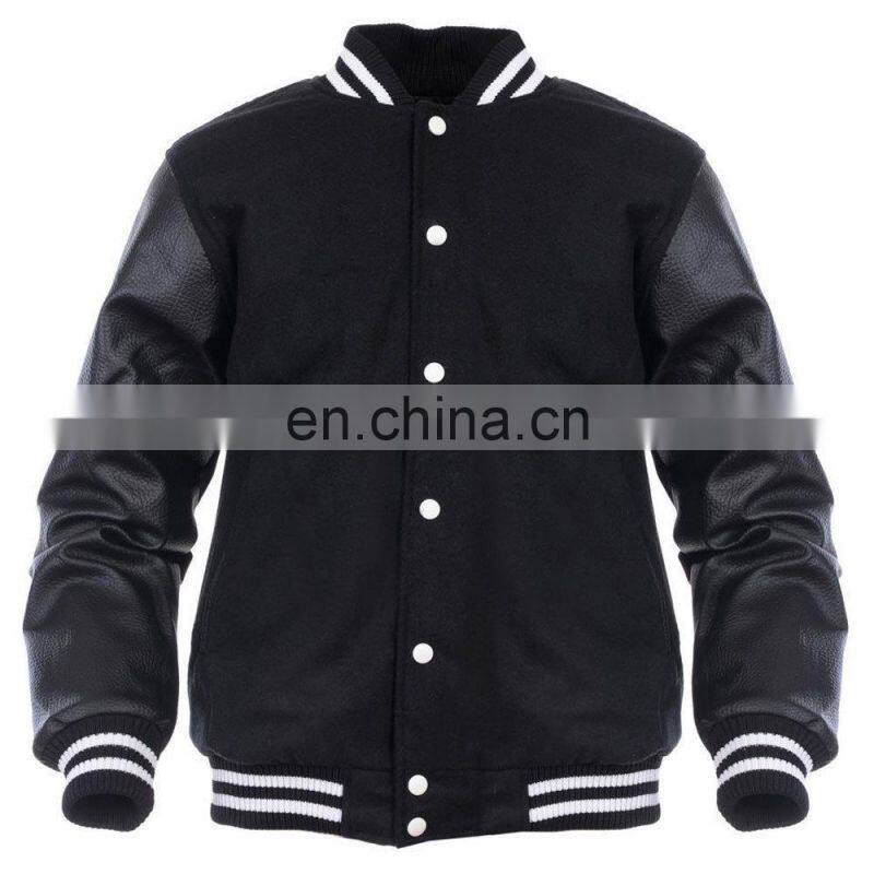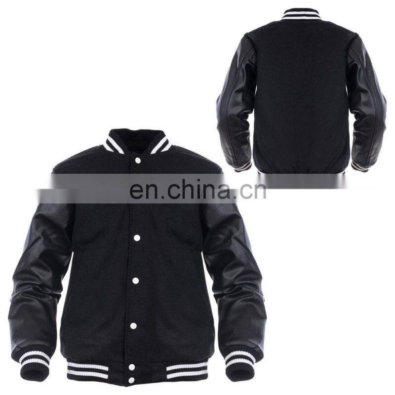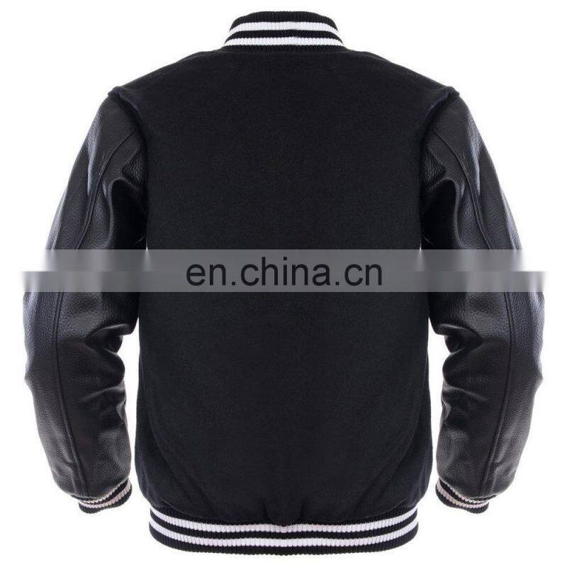 Wholesale Plain Men or Women Custom Black Baseball Letterman Varsity Jacket With Leather Sleeves