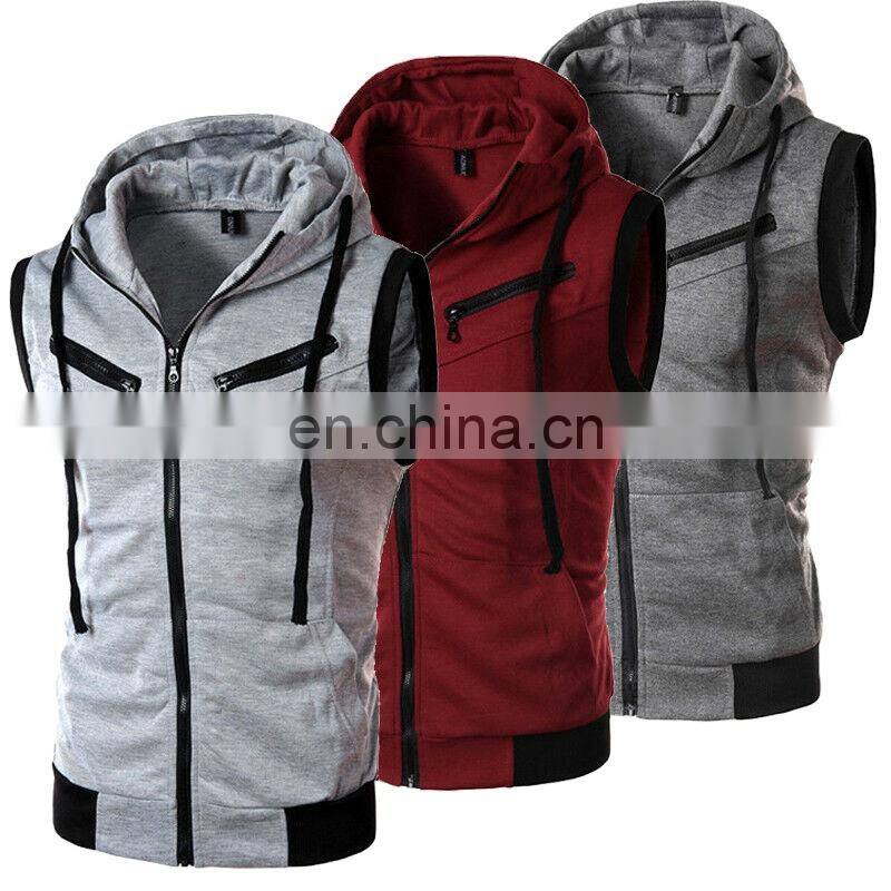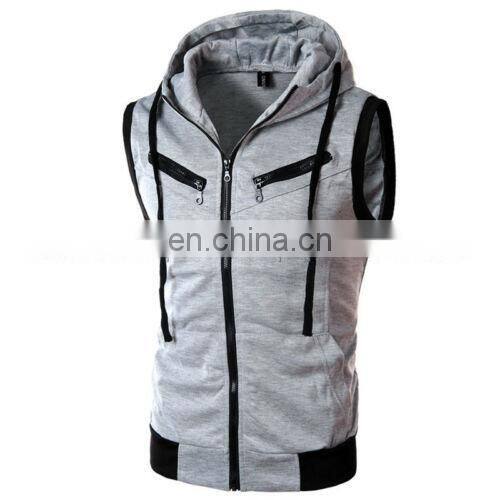 Mens Fitness Sleeveless Hoodies Full Zip Pocket Sweatshirts Custom Gym Hoodie Style Zipper-Up