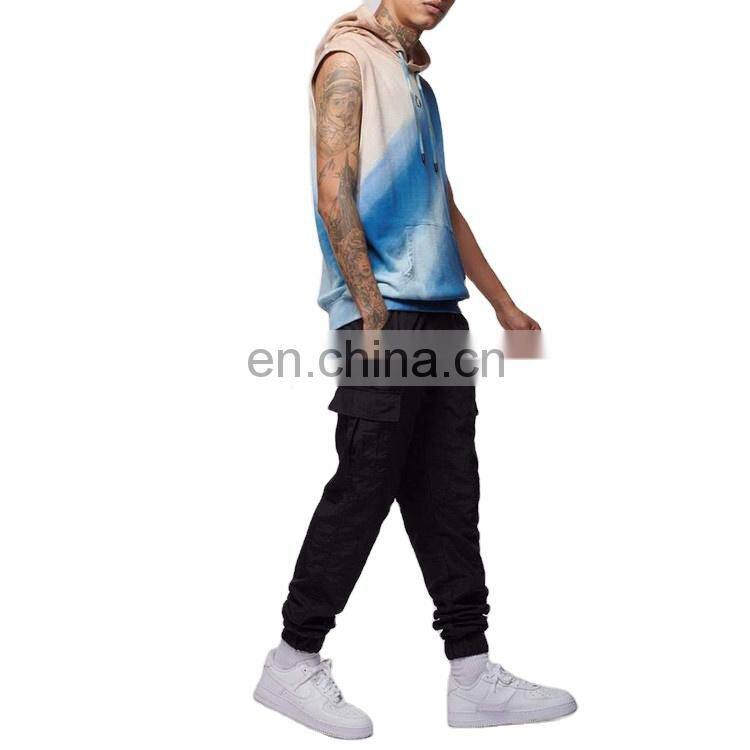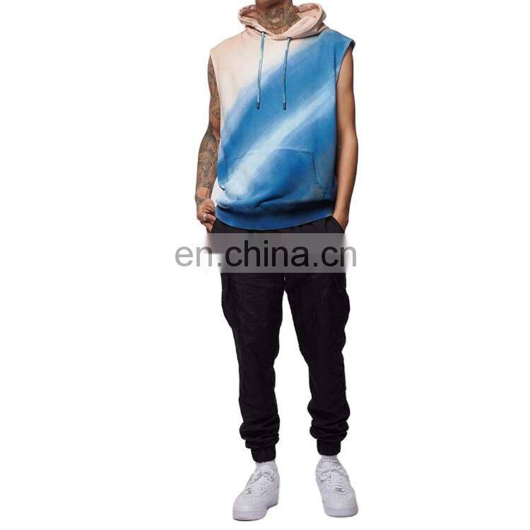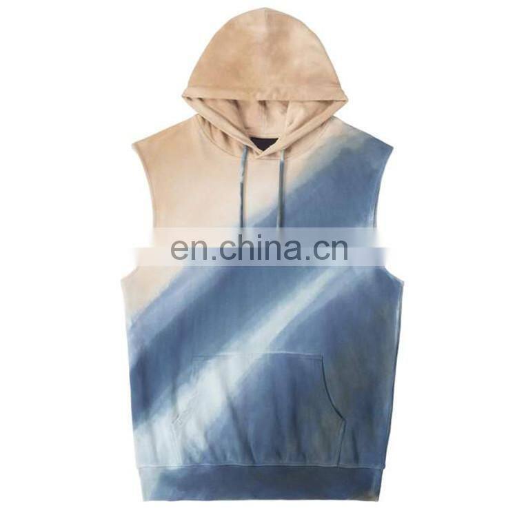 Home > Products > Sports Wear > Men's Sleeveless Hoodies Custom Cotton Drawstring Blue Tie Dye Sleeveless Pullover Hoodie
