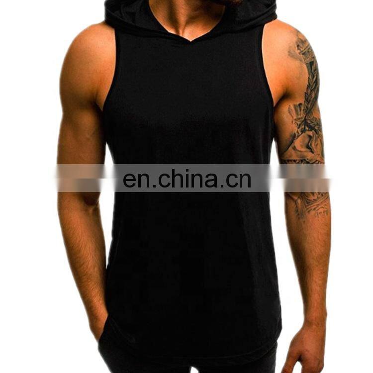 Wholesale High Quality Men Sleeveless Hoodie Custom Men's Blank Hoodie Men Casual Gym Fitted Hooded Tank Top