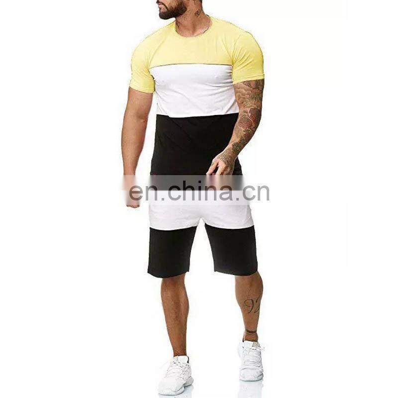 Hot Selling Summer Two Piece Set Men Tracksuit Solid Color Mens t Shirt and Short Set