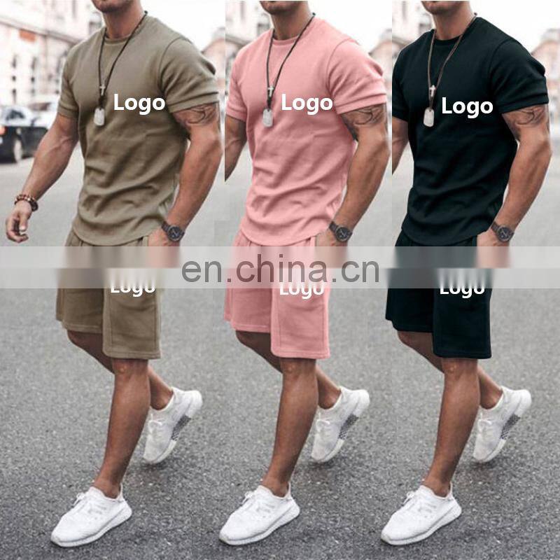 Latest Customized Mens Tracksuit Short Sleeve t Shirts Summer Two Piece Shorts Set Custom Logo Men Sweatsuit