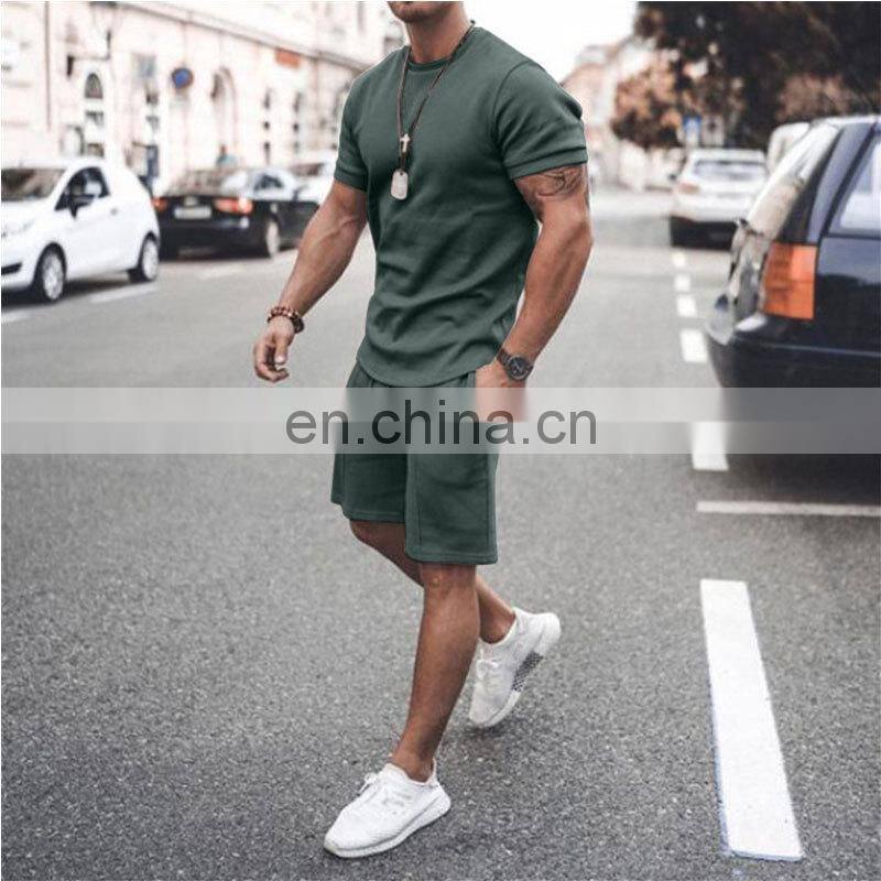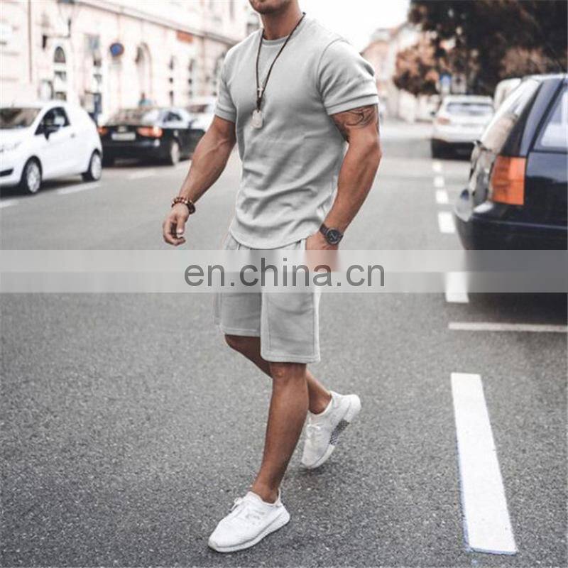 Hot Selling Summer Two Piece Set Men Tracksuit Solid Color Mens t Shirt and Short Set