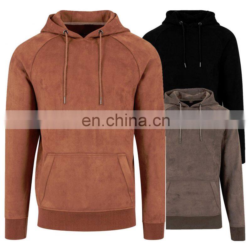 Wholesale Fleece Hoodie New Design Long Sleeve Men's Pullover Winter Warm Velour Velvet Suede Hoodie for Men