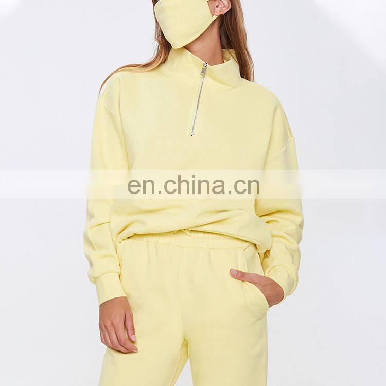 Two Side Pocket Pull Over Fashion Thick Cut and Sew Half Zip up Hoodies