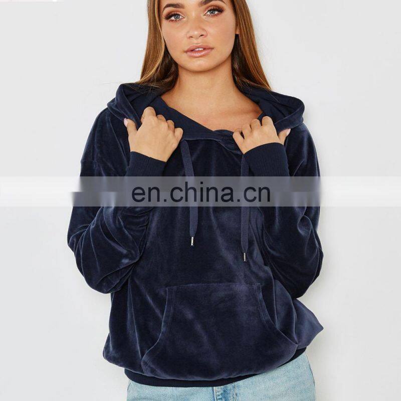 Custom Clothing Spring Velvet Letter Embroidery Casual Female Tops Streetwear Pullover Women Hoodies