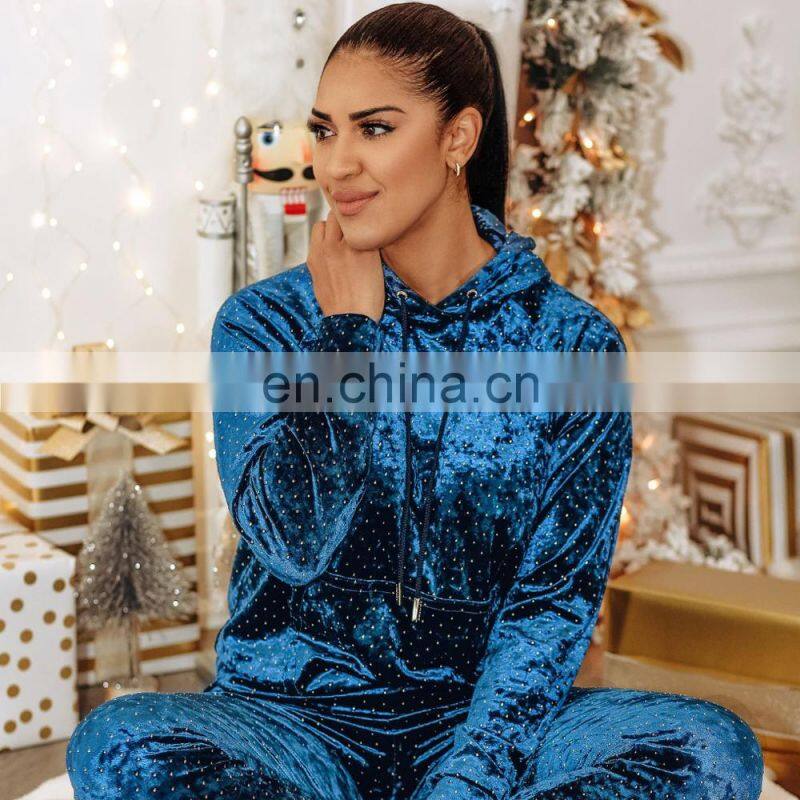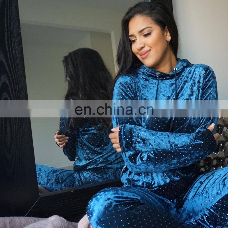 Autumn Winter Jogger Jumper Gym Custom Workout Velvet 2 Piece Pant Women Set Oversize Hoodie Women
