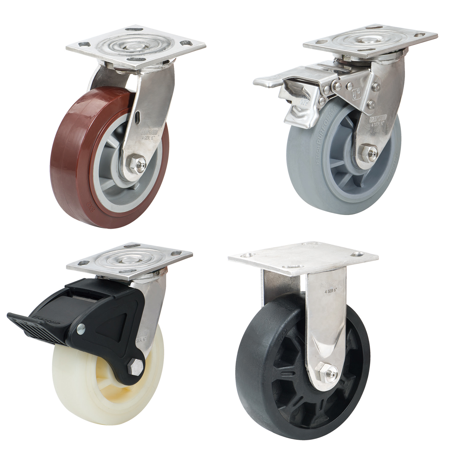 Stainless Steel Casters SS304 Stainless Steel Castors 2.5/3/3.5/4/5/6 Inch PU/PA/TPR/PP Medium Duty Caster Wheels