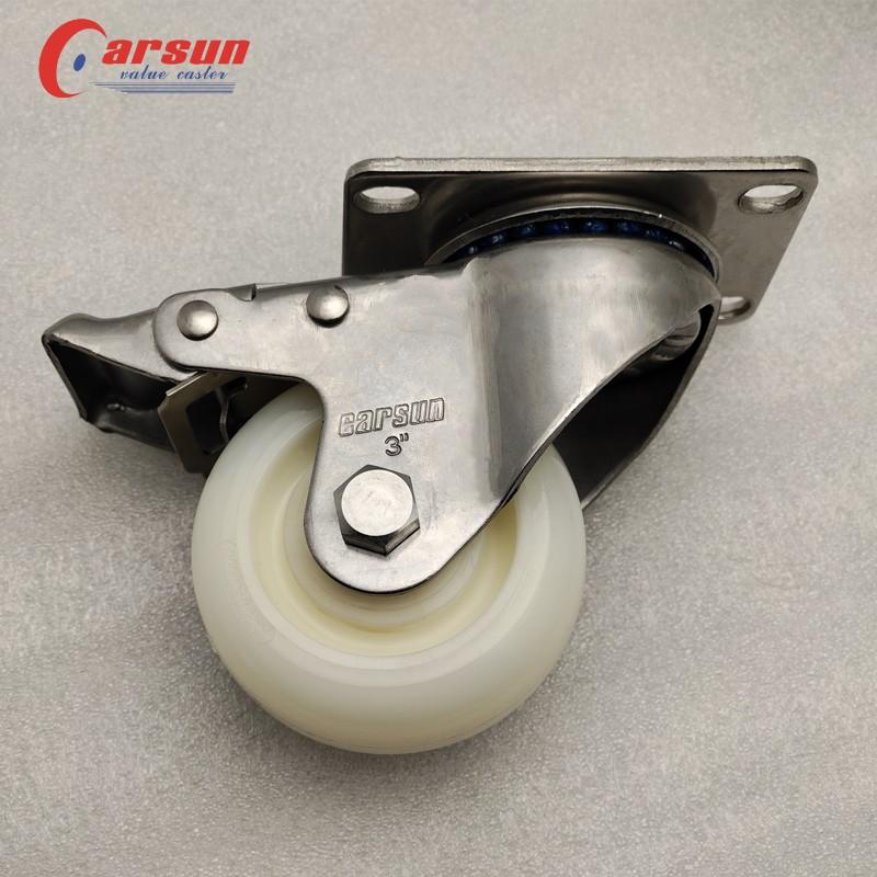 Low Center of Gravity Casters 3 Inch White Nylon Swivel Casters for Network Cabinets