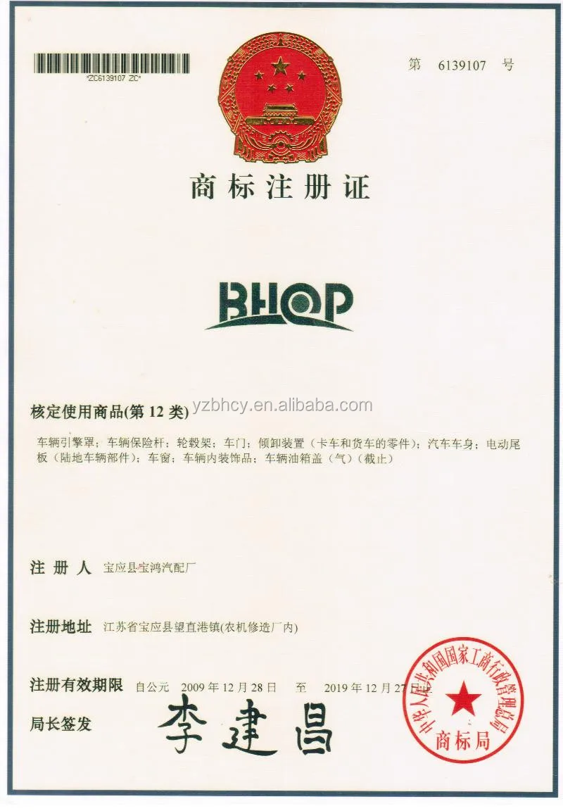 Yangzhou Baohong Vehicle Industry Co.,Ltd is located in the historical and cultural city of Yangzhou-Baoying,which has beautiful scenery and humanities Fair.It is less than 500 meters away from the exit of Beijing-Shanghai expressway,and it is near the word famous Beijing-Hangzhou grand canal.The water and land transportation is very convenient.We are specializing in designing,manufacturing and selling car body metal covering parts,mainly production is hood,fender,door,trunk lid,plastic bumper,and so on,for Mazda,Haima,Toyota,Buick,etc.We have our own brand——”BHQP”,which was indentified as “Yangzhou well-know brand”and “Jiangsu famous brand”.