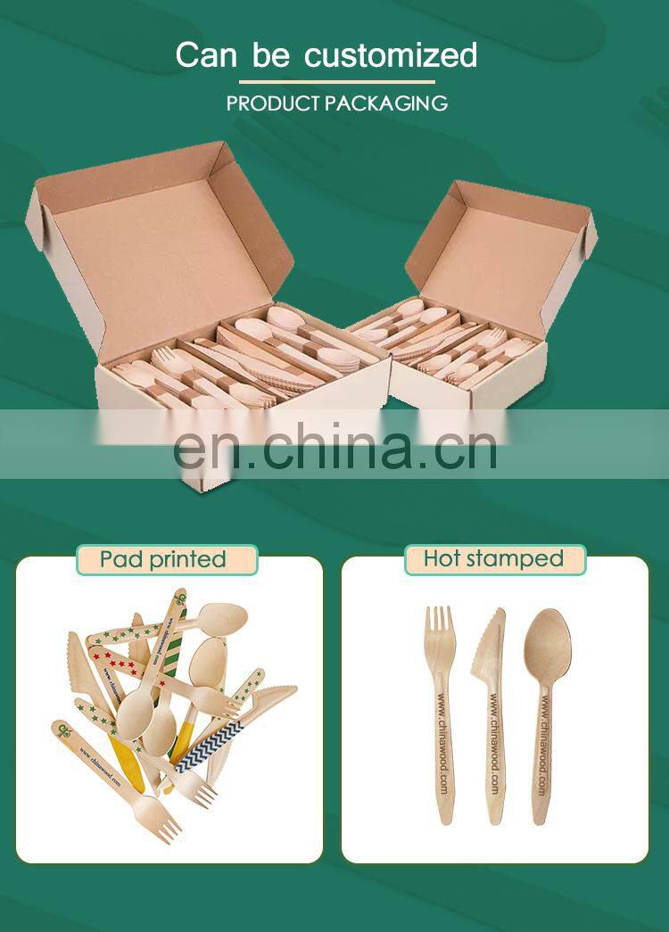 Yada Chinawood Biodegradable Disposable Food Birch Wood Individual Cutlery Set Package Knife Fork and Spoon Set