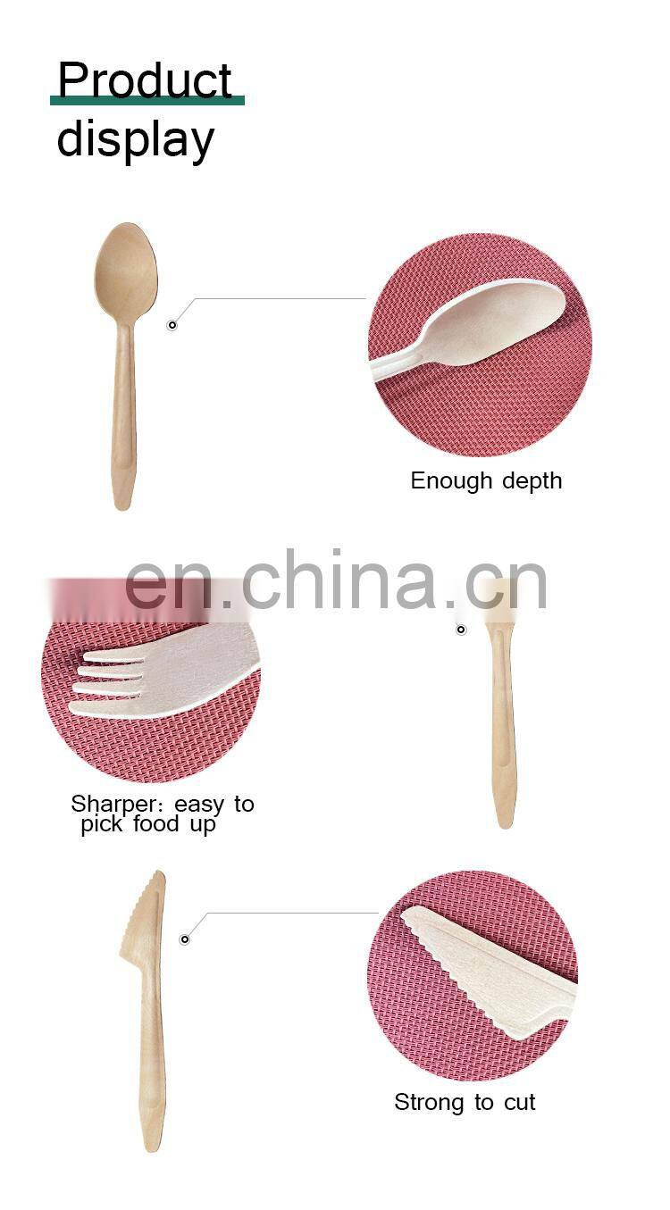 Natural Birch Wood Biodegradable Disposable Wooden Cutlery Set Einwegbesteck Holz Knife Spoon Fork Set