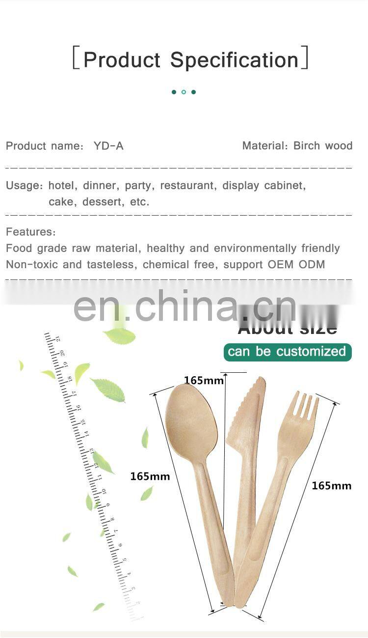 Yada Manufacturer Ecofriendly Cutlery 185mm Disposable Birch Dessert Wooden Knives Forks Spoons Degradable Tableware