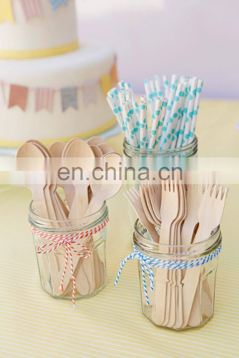 Yada 7.5 Inch 185mm Disposable Wooden Spoon Fork 193mm Knife Biodegradable Disposable Wooden Cutlery